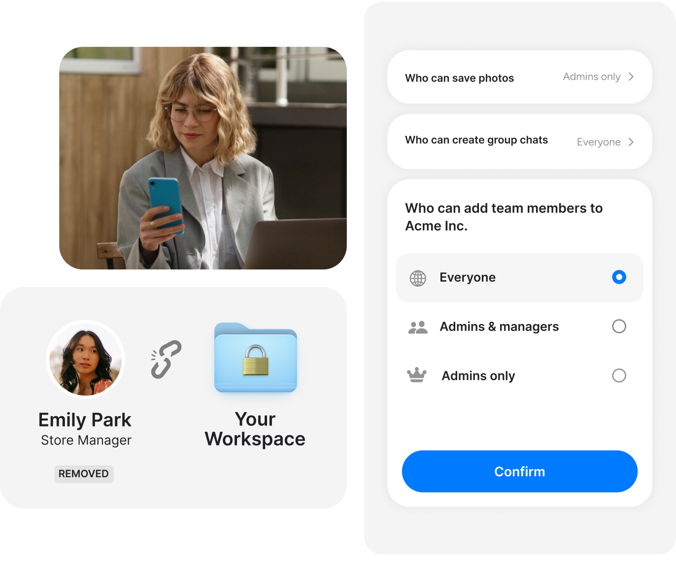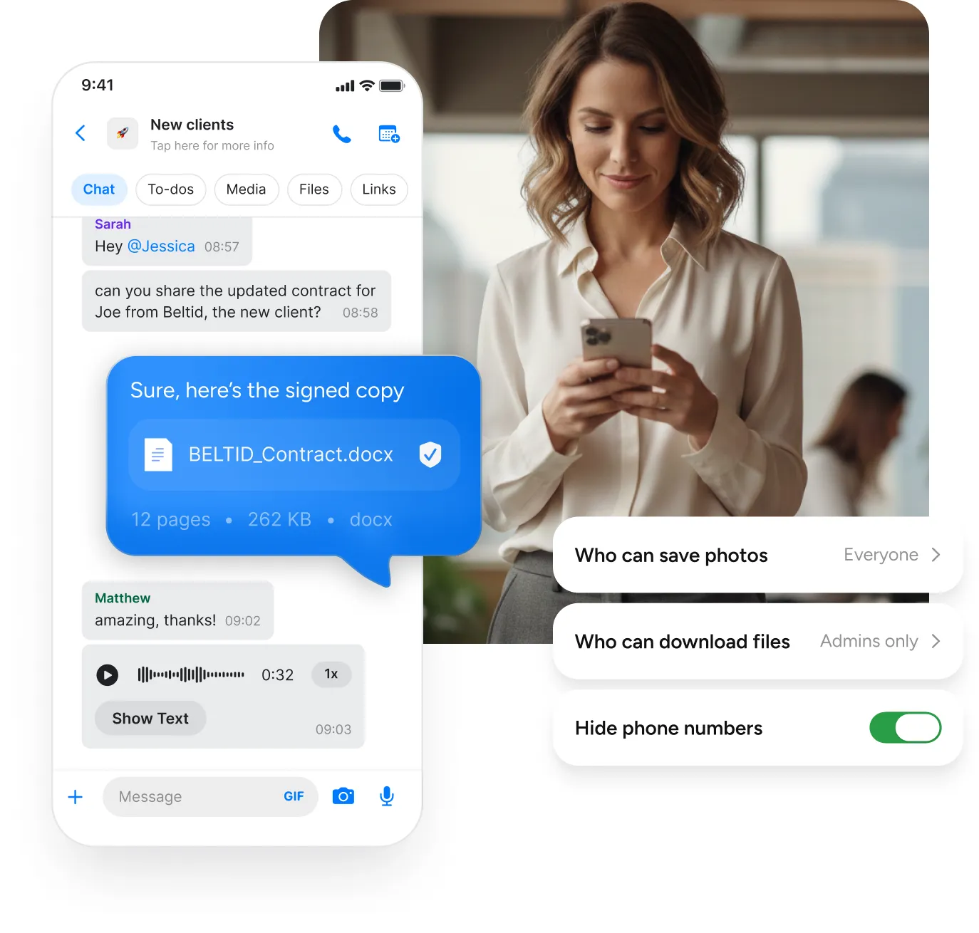 When someone leaves, their access to sensitive conversations shouldn't go with them. With Zenzap, you can instantly remove access, keep business data off personal devices, and control exactly who sees what.
