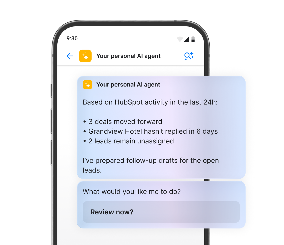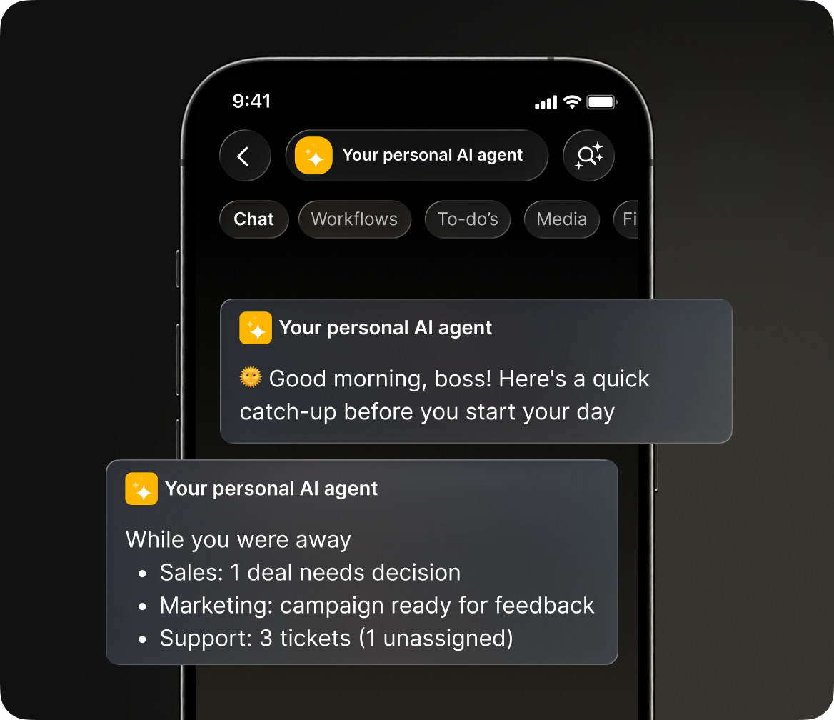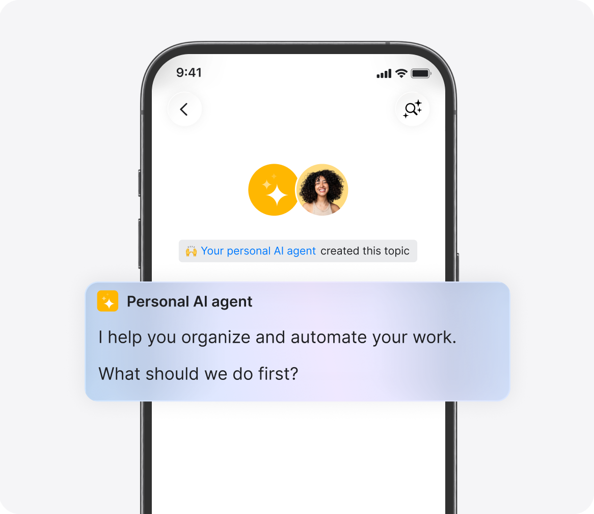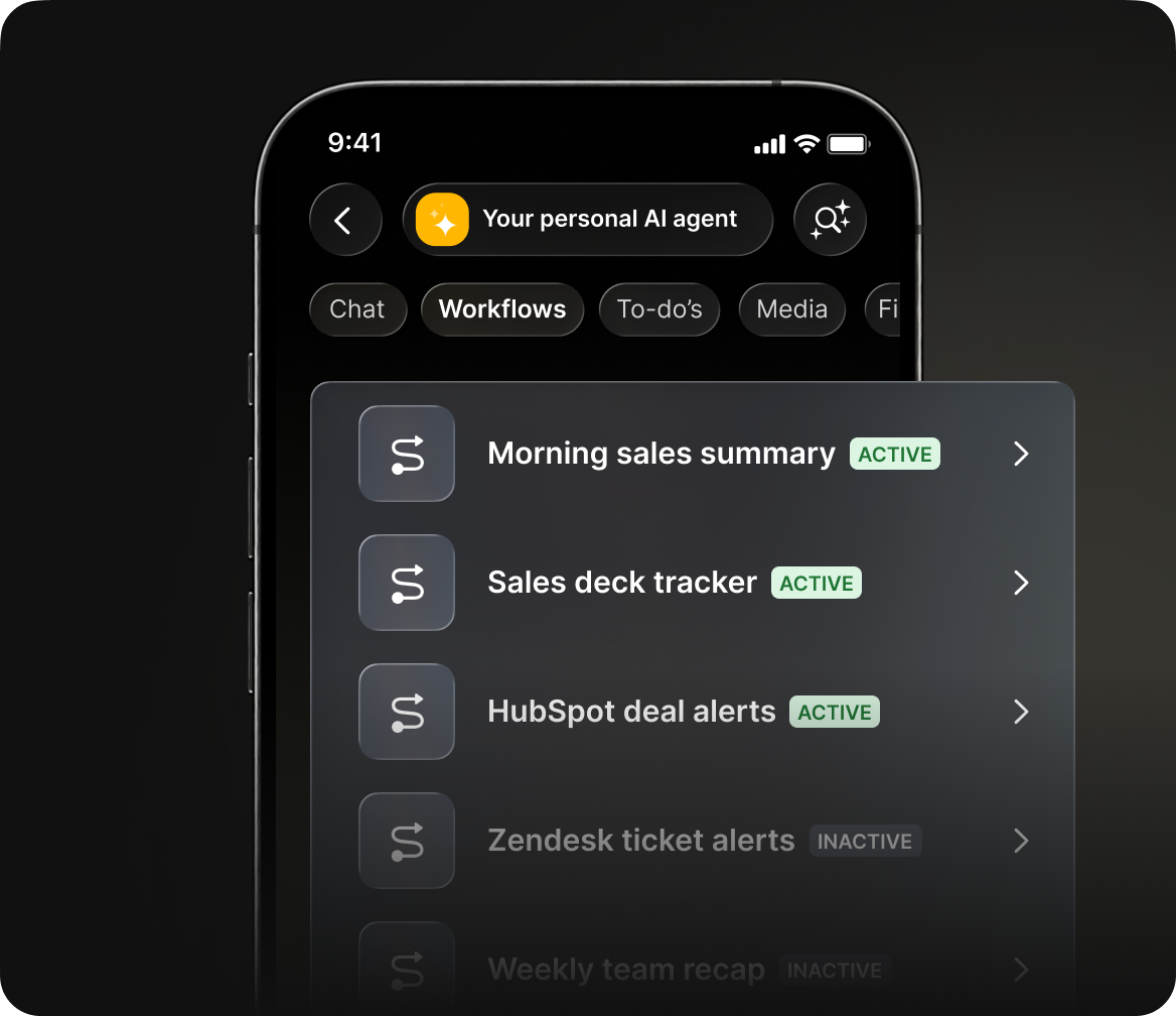 Your personal work agent knows your business, understands your priorities, and proactively suggests what it can help with based on what's happening.