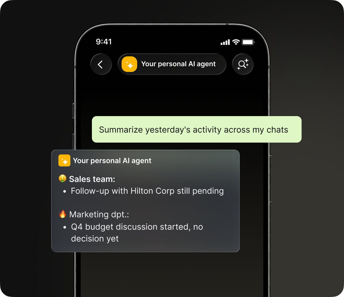 Add the agent to any conversation and it already knows what's been decided and who's involved