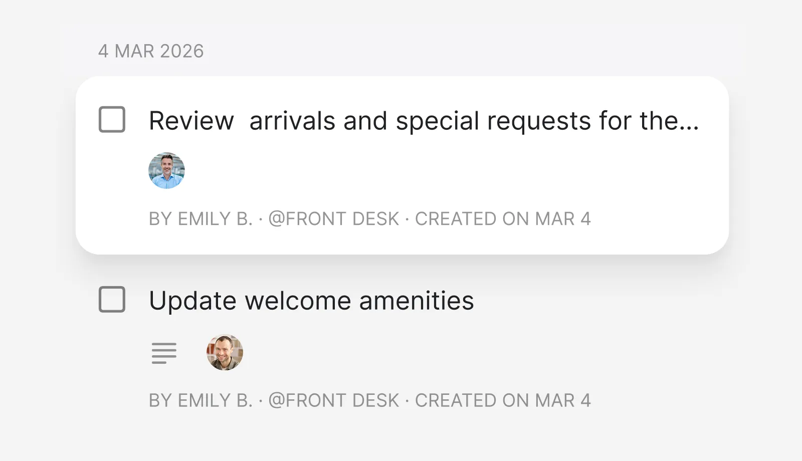 Front Desk, Housekeeping, Maintenance, Restaurant - each team has their own space. No more chaotic group chats.