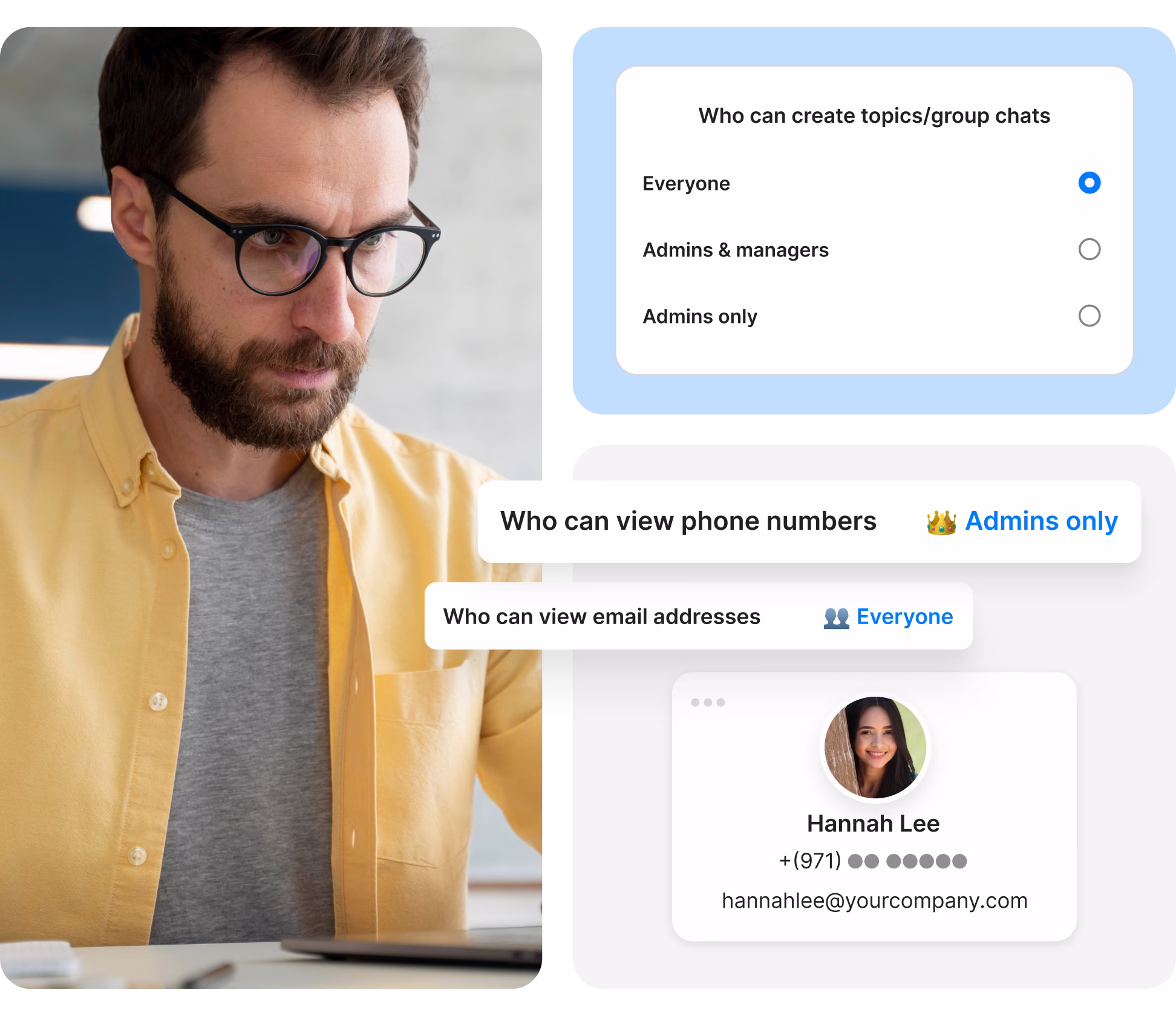 When an employee leaves, revoke their access immediately. This ensures that ex-employees cannot retain sensitive data, contact lists, or remain in group chats.