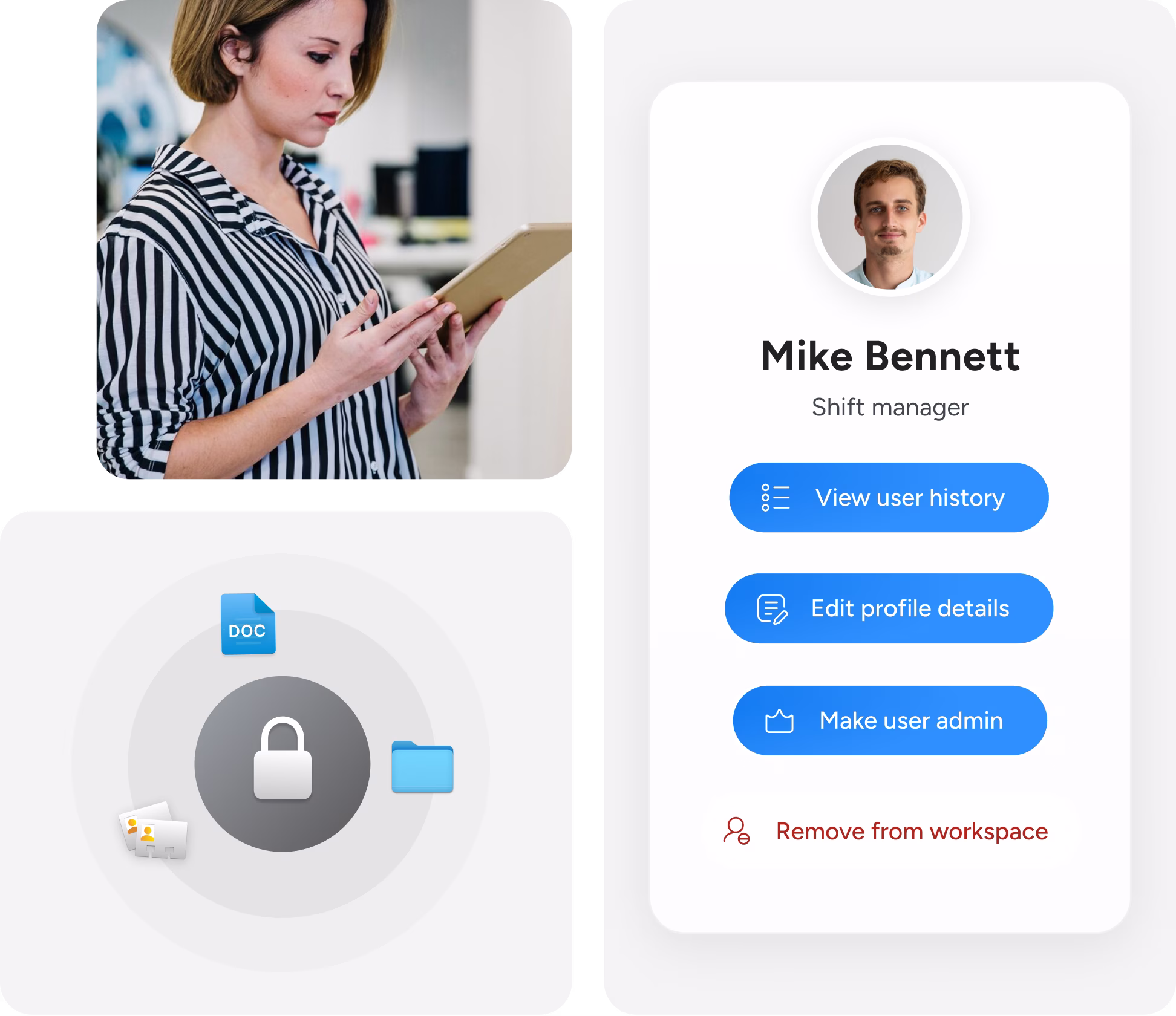 When someone leaves, remove them from all groups with one click - they’ll no longer have access to files or chat history