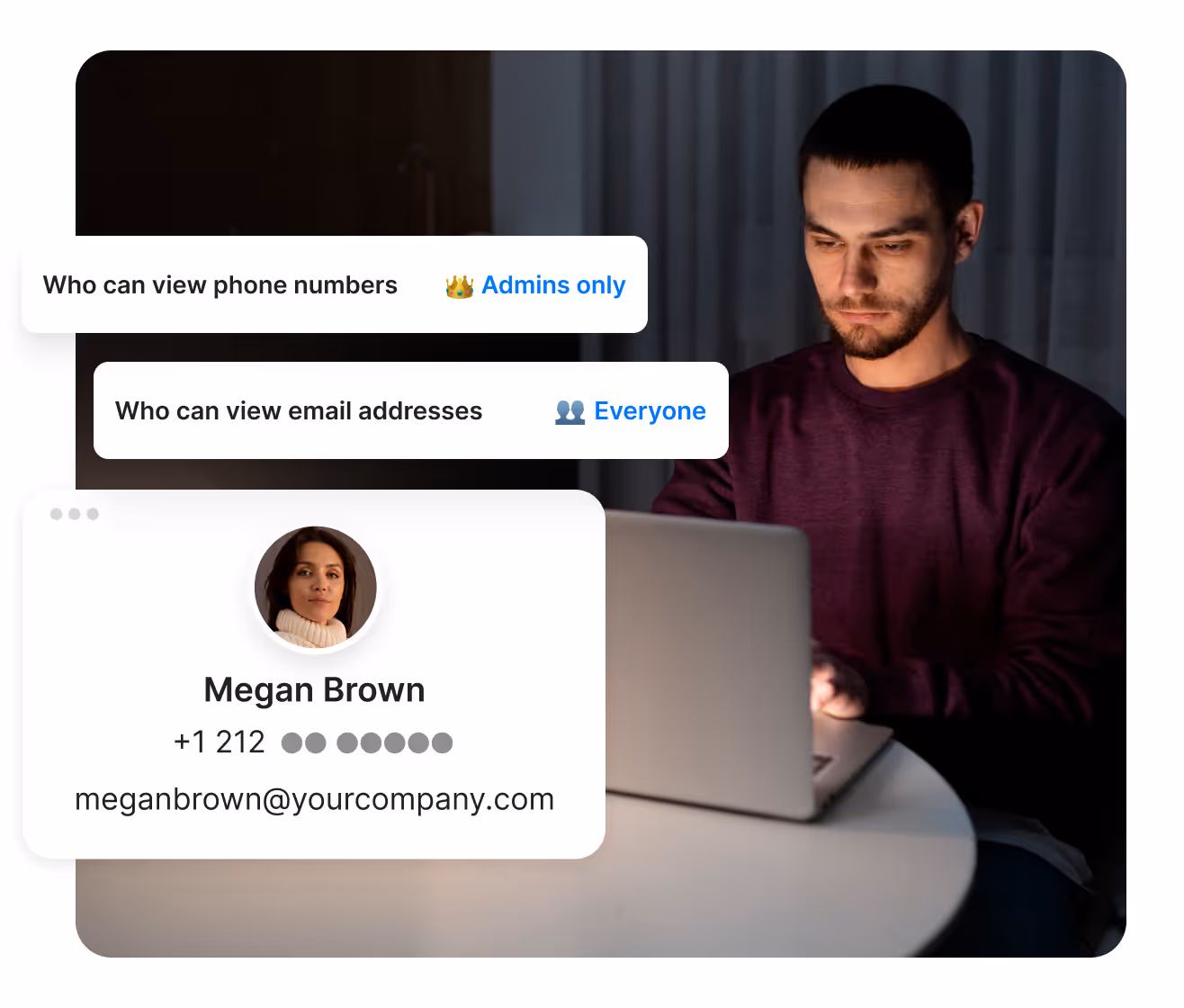 Protect your team’s privacy by hiding personal contact details. This stops unprofessional behavior before it starts and shields your company from legal risks.
