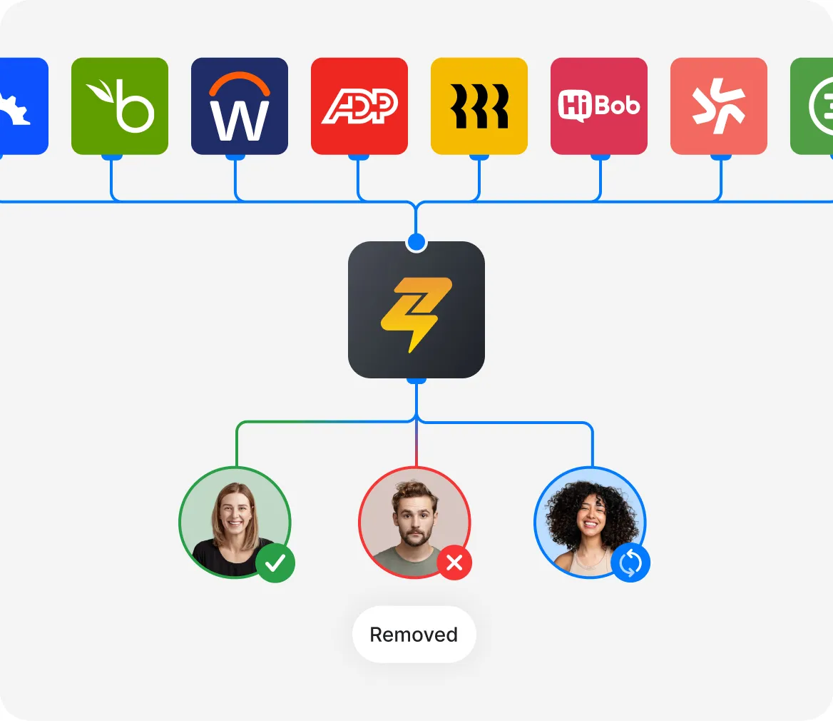 Connect your HR system and import your entire team in minutes. Employee data stays in sync automatically as people join and leave.