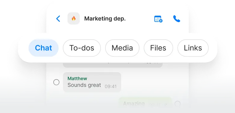 Create, assign, and track to-dos directly within your chats for seamless collaboration.
