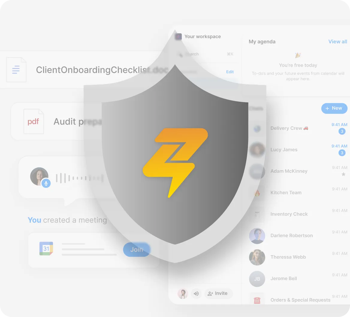 Track workspace activity with detailed logs, giving you full visibility into who signed in, joined chats, or changed settings.