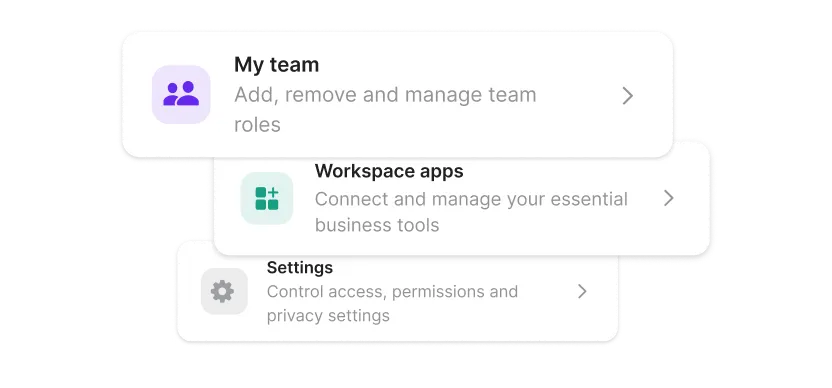 Easily manage your entire company, invite users, manage permissions, and configure workspace policies.