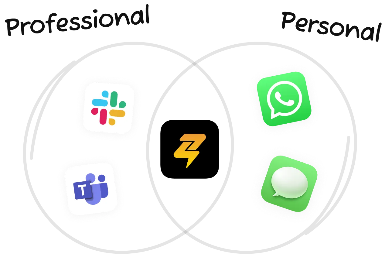 Zenzap is designed specifically for professional communication. Unlike WhatsApp or iMessage, Zenzap separates personal and work conversations, keeps your data secure, and includes features like task tracking, file sharing, and professional chat organization to streamline your workflow.